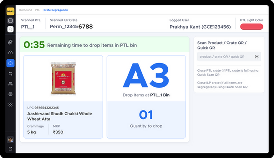 Once the crates are transported to the segregation (PTL) area, the segregator has to pick any crate and start segregating items based on store. User can start with any item they see first in the crate.